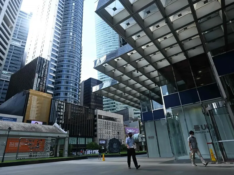 Trung tâm tài chính ở Singapore vắng vẻ vì dịch COVID-19. Ảnh: AFP