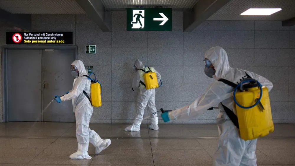 Nhân viên y tế khử trùng một ga tàu điện ngầm ở thủ đô Madrid, Tây Ban Nha ngày 20-3. Ảnh: AP