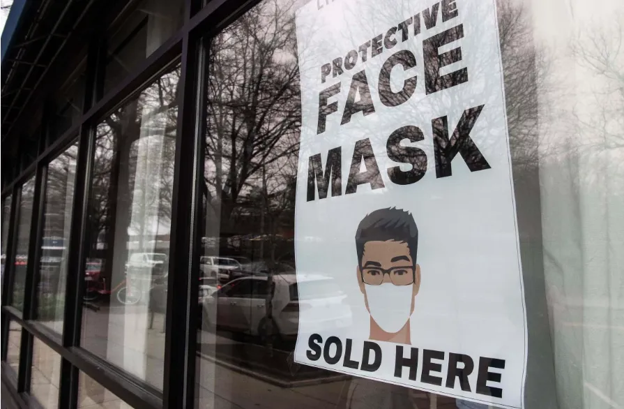 Bảng thông báo bán khẩu trang mùa dịch COVID-19 ở Mỹ. Ảnh: AFP