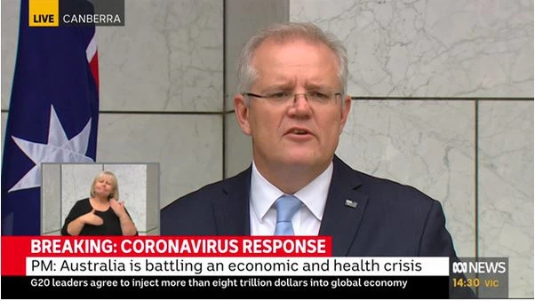 Thủ tướng Úc Scott Morrison trong buổi họp chiều 27-3. Ảnh: ABC NEWS AUSTRALIA