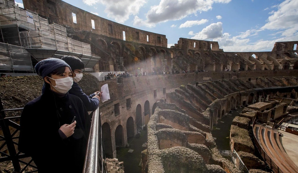 Sử dụng khẩu trang mùa dịch ở Rome (Ý). Ảnh: AFP