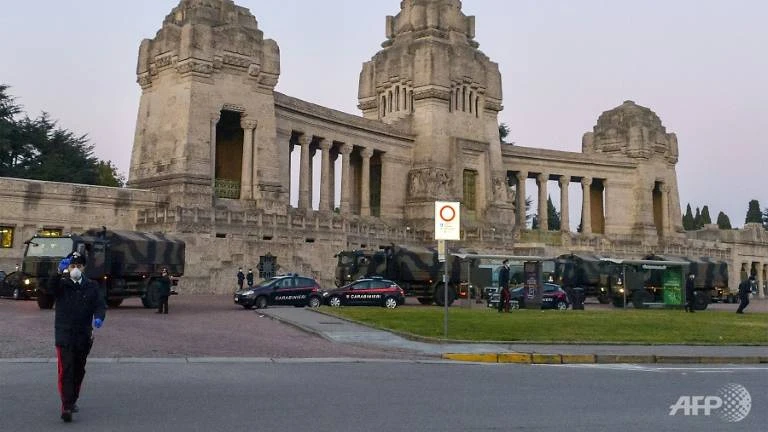 Cảnh sát và binh sĩ hỗ trợ chống COVID-19 ở tỉnh Bergamo, vùng Lombardy (Ý). Ảnh: AFP