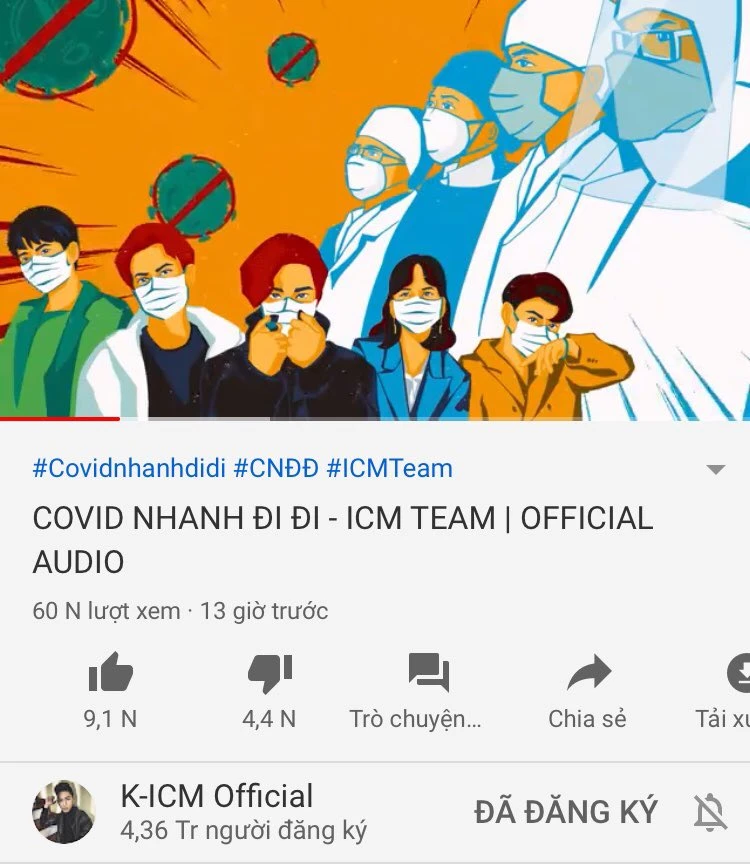 Đáng chú ý, COVID nhanh đi đi đã giúp kênh Youtube của K-ICM không phải nhận “bão dislike” như những MV hậu tan vỡ của K-ICM trước đó.