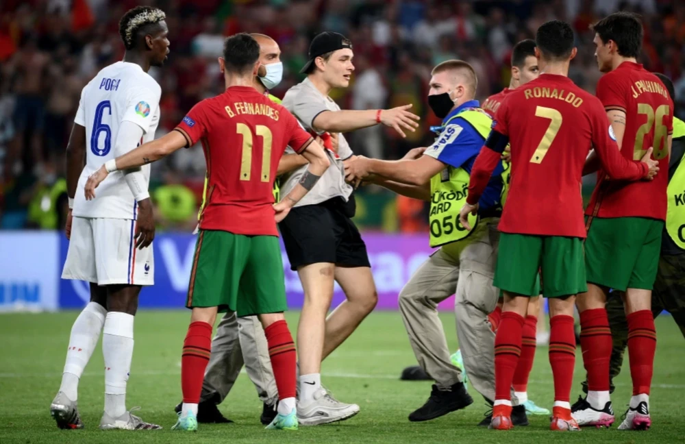 Một người hâm mộ đã vào sân nhưng một người quản lý đã kịp thời can thiệp trong khi Cristiano Ronaldo vẫn giữ được bình tĩnh.