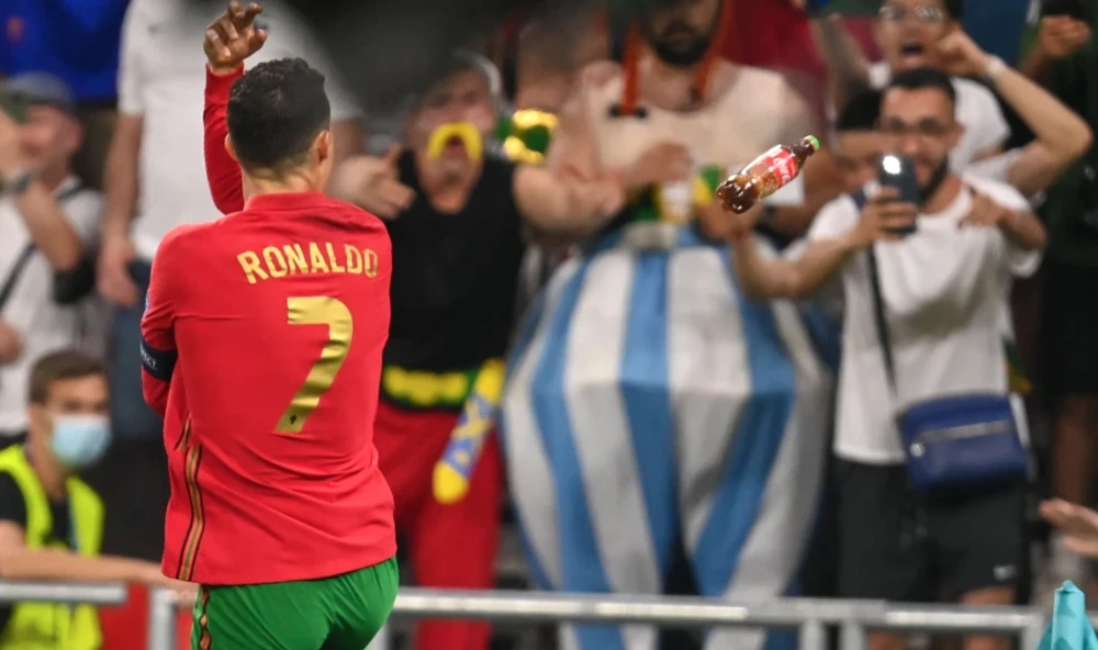Tình huống xảy ra phút 60, sau khi CR7 thực hiện thành công quả 11 m thứ hai. Như thường lệ, chân sút 36 tuổi chạy đến góc sân ăn mừng bàn thắng với điêu bộ quen thuộc cũng là lúc một chai Coca uống dở được ném thẳng về chỗ Ronaldo đang đứng.