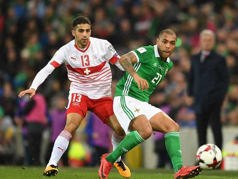Thụy Sĩ chơi lấn lướt Bắc Ireland nhưng lại chiến thắng nhờ quả phạt đền gây tranh cãi. Ảnh: AFP