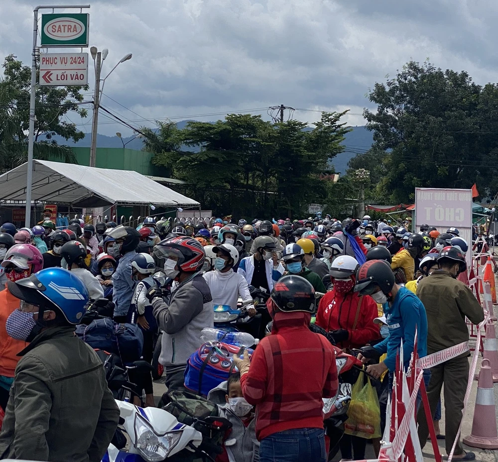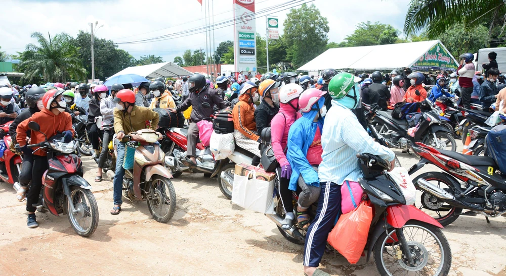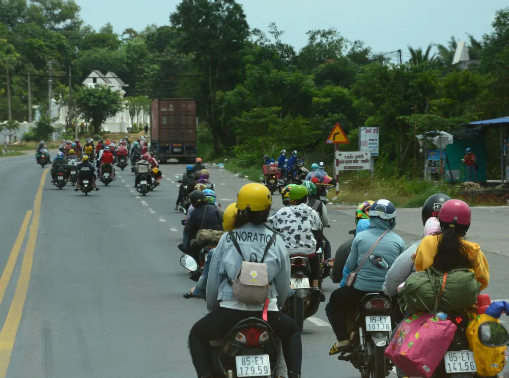11g15 ngày 2-10, đoàn mô tô đặc chủng của CSGT Công an tỉnh Đồng Nai đưa khoảng 2.000 công nhân người Bình Thuận, Ninh Thuận đi xe máy theo QL1A đến giáp ranh tỉnh Bình Thuận và bàn giao cho Trạm CSGT Hàm Tân.