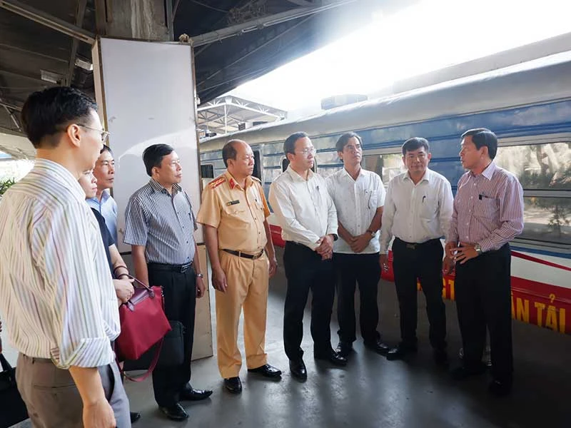 Trong buổi kiểm tra, ông Khuất Việt Hùng đã cùng đại diện Cục Cảnh sát giao thông, Ban ATGT TP kiểm tra tình hình giao thông tại các điểm nóng ga Sài Gòn, Bến xe Miền Đông, sân bay Tân Sơn Nhất.