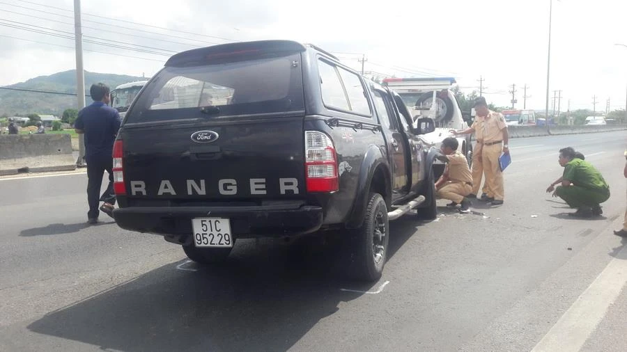 Hiện trường vụ tai nạn tài xế (nghi tâm thần) tông Đại úy CSGT Chu Quang Sáng tử vong. Ảnh: KHÁNH LY