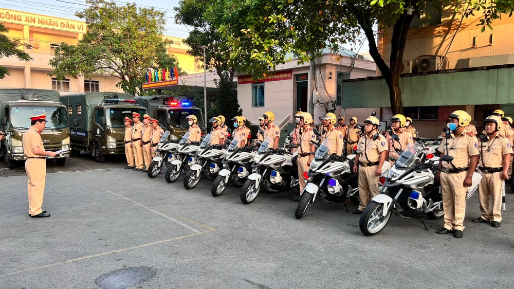 | Phòng Cảnh sát giao thông ra quân đảm bảo an toàn giao thông, trật tự xã hội. Ảnh: LÊ ÁNH |