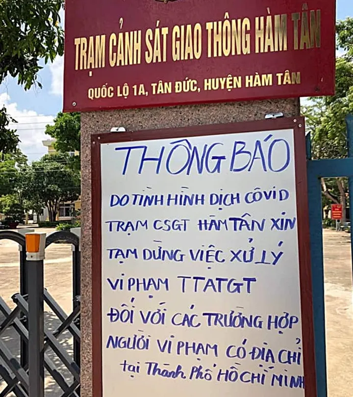 Để thực hiện nghiêm chỉ đạo của Ban Chỉ đạo phòng, chống địch COVID -19 tỉnh Bình Thuận, Phòng Cảnh sát giao thông tỉnh tạm dừng việc xử lý vi phạm trật tự an toàn giao thông trực tiếp tại trụ sở phòng Cảnh sát Giao thông tỉnh, Trạm Cảnh sát giao thông Hàm Tân, Đội Cảnh sát giao thông số 1 đối với các trường hợp người vi phạm có địa chỉ cư trú tại TPHCM.