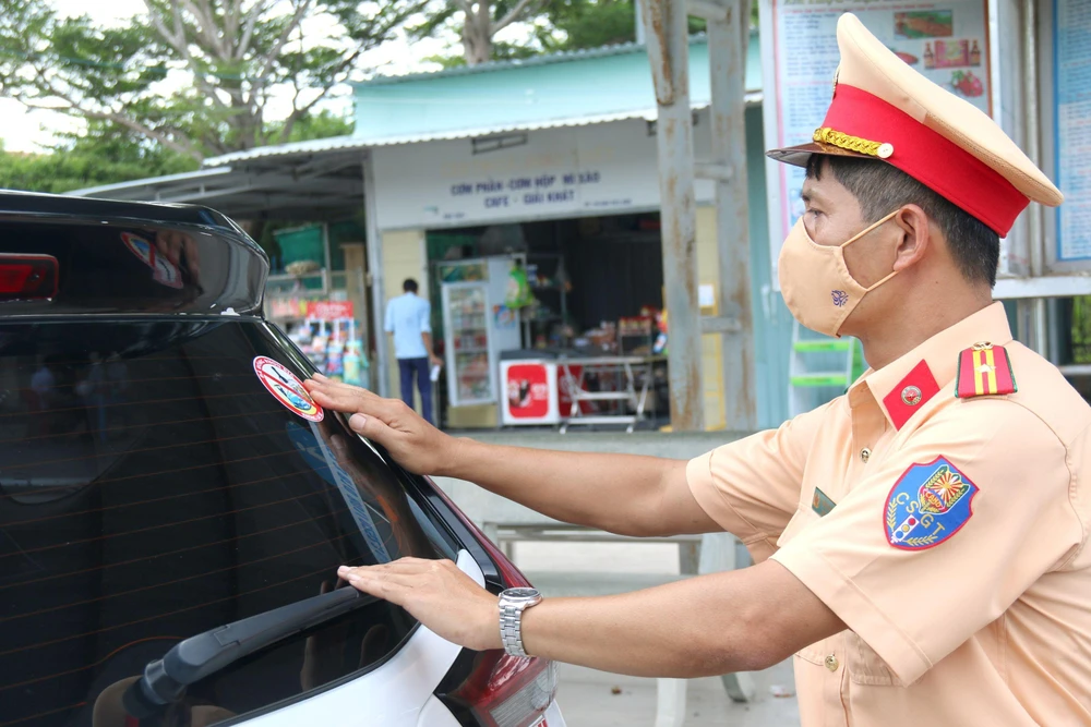Lực lượng chức năng cũng cấp phát và dán logo decal với nội dung trên tại các cơ sở kinh doanh ăn uống, các phương tiện vận tải công cộng...