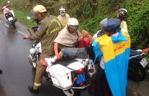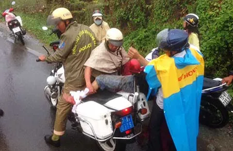 CSGT giúp người bị nạn đưa đi cấp cứu tại quận 2, TP.HCM. Ảnh: Mai Hữu