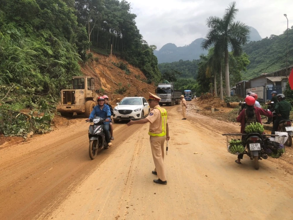 Phòng CSGT cũng chủ động phân công các tổ công tác tuần tra, phân luồng 24/24 trên dọc các tuyến giao thông bị ảnh hưởng qua địa bàn tỉnh để kịp thời xử lý các tình huống.