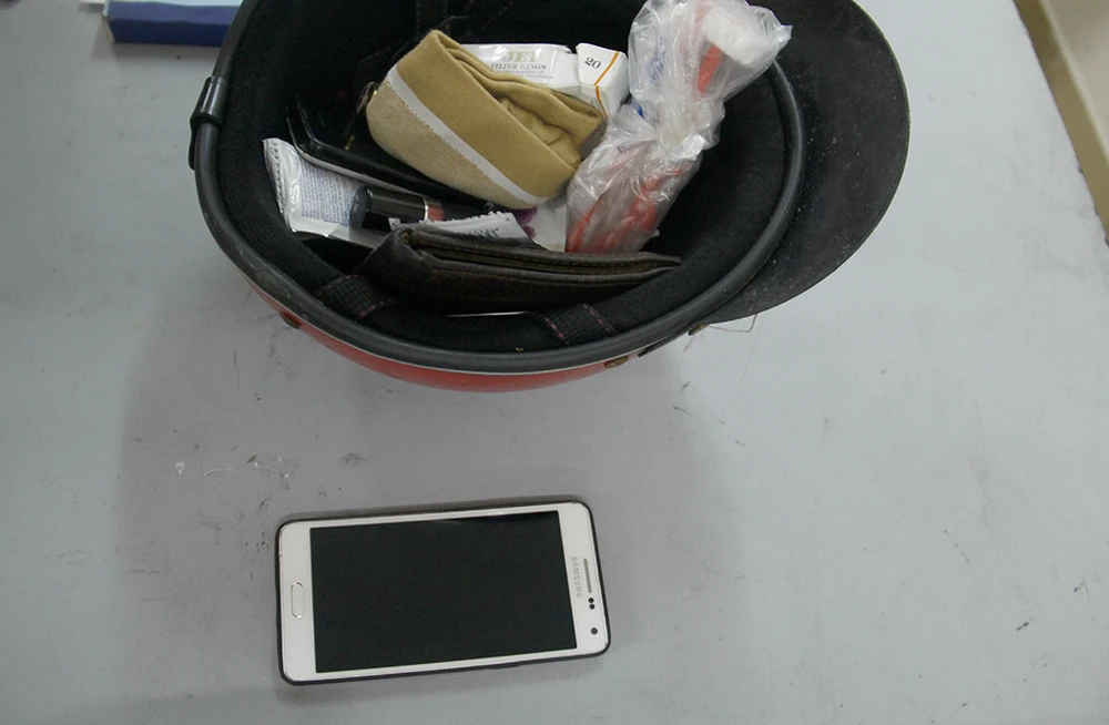 Tang vật thu được là điện thoại bị cướp giật và bộ "đồ nghề" dùng ma túy đá. Ảnh: HK