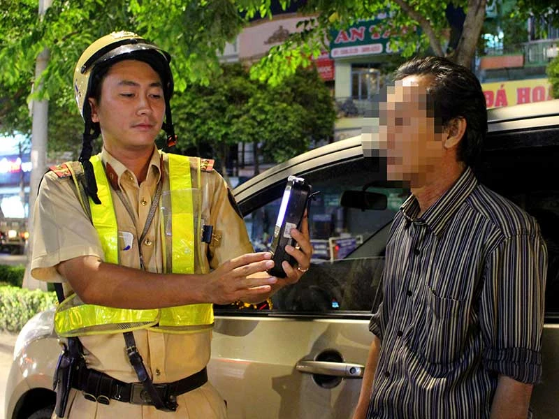 CSGT đo nồng độ cồn người lái ô tô và lập biên bản các trường hợp vi phạm là những hình ảnh, việc làm công khai của CSGT mà người dân được quyền chụp ảnh, ghi hình… Ảnh: LÊ THOA