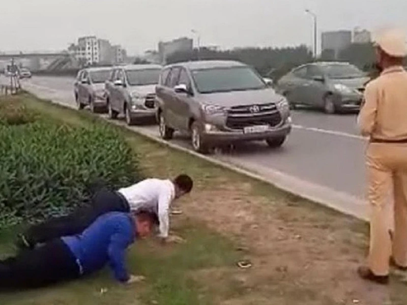 Cách đây hai ngày, trên Facebook xuất hiện clip cho thấy một số tài xế ô tô tham gia lưu thông trên cao tốc Hà Nội - Bắc Giang đang chống đẩy (hít đất) bên lề đường. Cạnh đó, một cán bộ CSGT đếm to số lần chống đẩy...