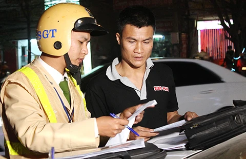 CSGT Hà Nội xử phạt người vi phạm giao thông. Ảnh: TUYẾN PHAN