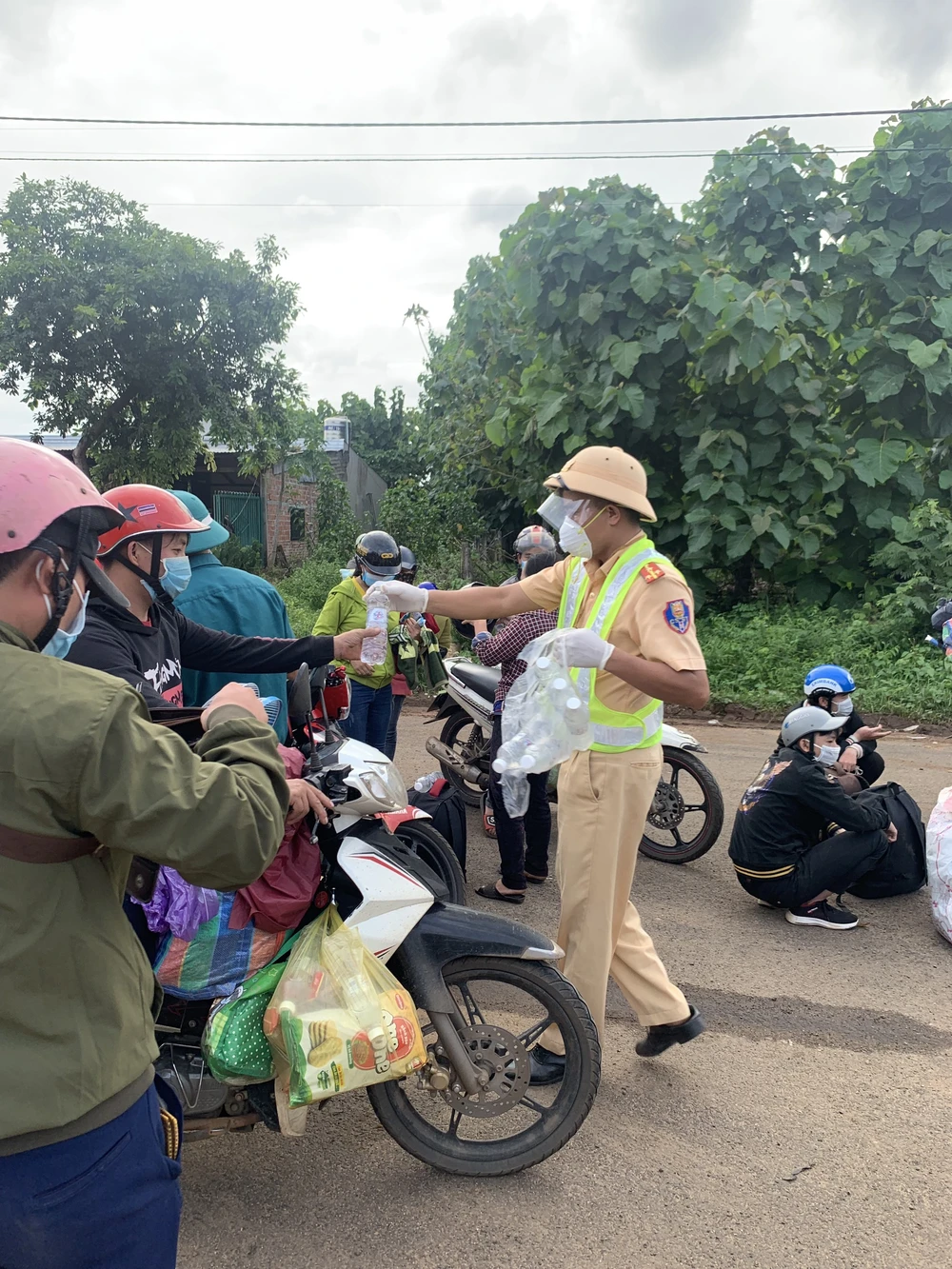 Đồng thời, CSGT cũng phối hợp các lực lượng chức năng cùng các nhà hảo tâm phát tặng miễn phí nước uống, đồ ăn nhanh, dựng lều bạt cho nghỉ ngơi, đảm bảo cách ly theo đúng quy định….