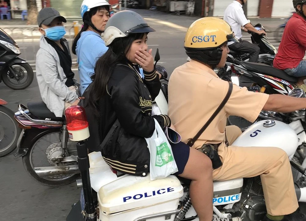 Thấy thí sinh loay hoay, hốt hoảng bảo chưa biết làm sao thì một CSGT trong đội đã lập tức chạy lấy mô tô đặc chủng để chở em Nhi đi tìm mua một quyển Atlat để kịp giờ thi.