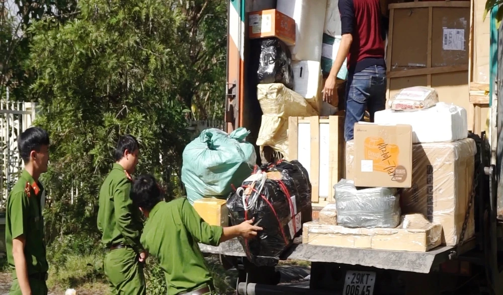 Đội Cảnh sát kinh tế - môi trường Công an huyện Hòa Vang đã đến tiếp nhận xe tải trên, đưa về trụ sở để phân loại hàng hóa và kiểm đếm.