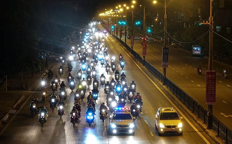 Lực lượng chức năng đã triển khai các phương án đón đoàn đi qua Hà Nội, phân làn phương tiện, tránh ùn tắc giao thông và hỗ trợ dẫn đường cho người dân tham gia giao thông nhằm đảm bảo an ninh trật tự, an toàn giao thông.