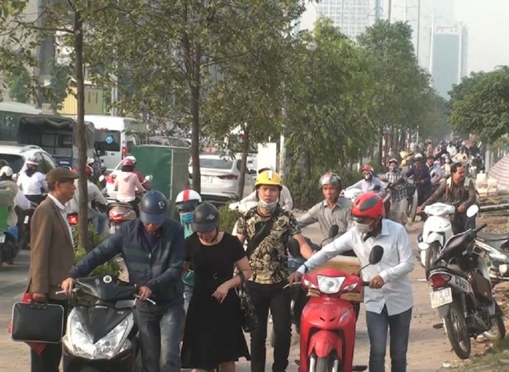 Như Pháp Luật TP.HCM đã đưa tin, ngày 5-11, trên mạng xã hội xuất hiện một clip ghi lại hình ảnh hàng trăm người đang tham gia giao thông bằng cách dắt bộ xe máy đi ngược chiều trên vỉa hè đường Tố Hữu (Hà Đông, Hà Nội).