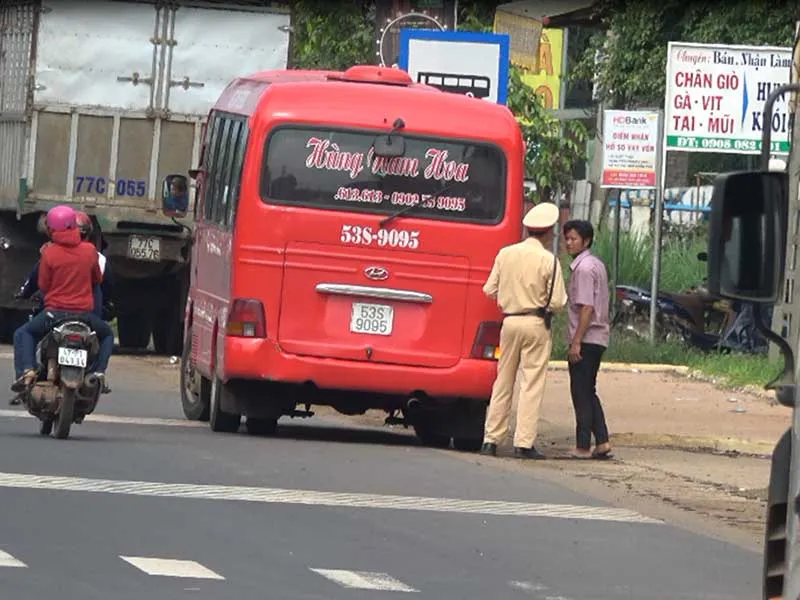 Ở chiều Đắk Lắk đi TP.HCM, một trung úy CSGT đứng khoanh tay gần cột điện. Bên kia đường, một CSGT đứng cạnh mô tô đặc chủng. Cùng lúc, hai xe khách của hãng HNH tự động tấp vào lề và người trên hai xe này chạy đến chỗ hai CSGT ở hai bên đường. Chưa đầy 10 giây, cả hai chiếc xe của hãng HNH đều trình giấy xong, rồi mạnh ai nấy đi.