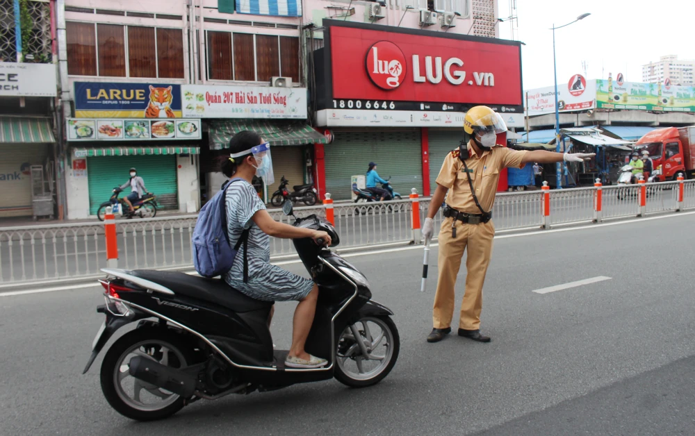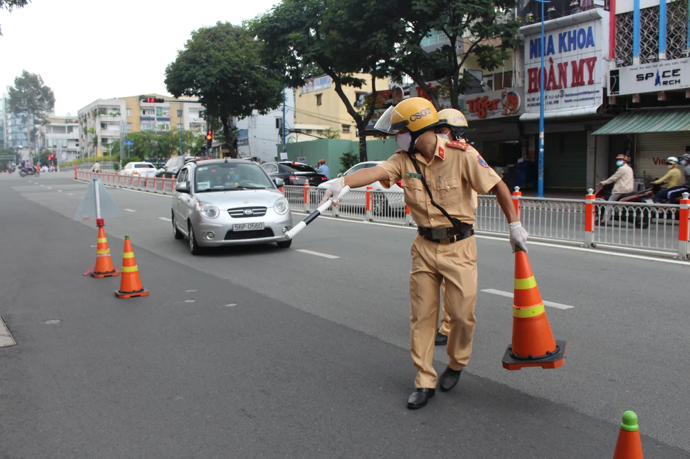 Thiếu tá Phan Phạm Anh Tài - Đội trưởng Đội CSGT-TT Công an quận 3, cho biết thực hiện theo chỉ đạo, Công an quận 3 đã triển khai chuyển trạng thái từ kiểm tra tại các chốt cố định sang tuần tra, kiểm soát lưu động.