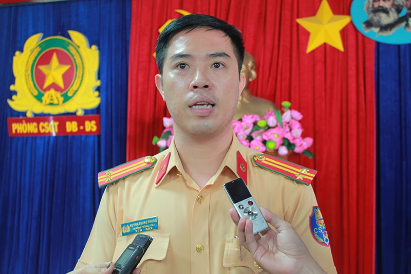 Trung tá Huỳnh Trung Phong, Trưởng PC67 Công an TP.HCM, thông tin trong hội nghị sơ kết công tác phối hợp giữa các lực lượng xử lý ùn tắc giao thông (UTGT) tại 34 điểm có nguy cơ UTGT năm 2018, sáng 16-8.