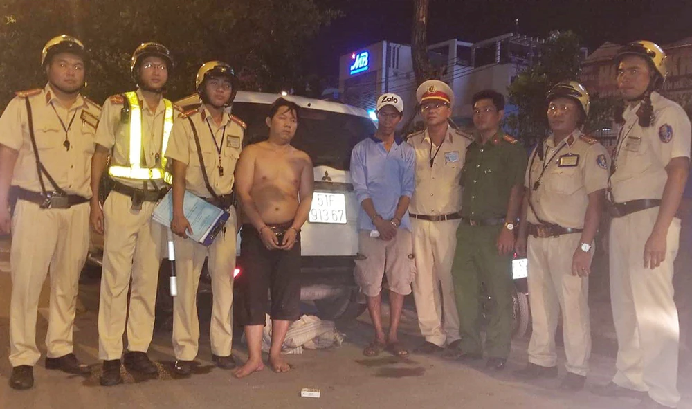 Khoảng 20 giờ 30 tối 17-8, khi đang thực hiện kiểm tra nồng độ cồn trên quốc lộ 1 gần vòng xoay An Lạc thì Đội CSGT An Lạc đã phát hiện ô tô 51F-913.67 có biểu hiện nghi vấn nên đã yêu cầu dừng, kiểm tra bên trong xe.
