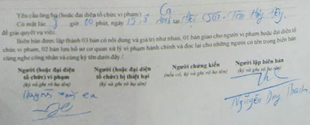 Như ông Ca nói thì có quá nhiều điều khuất tất trong vụ này: CSGT làm sai quy trình, không thông báo lỗi cho người vi phạm. Khi thu tiền của người vi phạm không ra biên lai. Ông không ký vào biên bản vi phạm, quyết định xử phạt nhưng theo tài liệu CSGT cung cấp sau đó lại có chữ ký của ông… Nếu chi tiết này là xác thực thì ai đã thay ông Ca ký vào biên bản vi phạm?