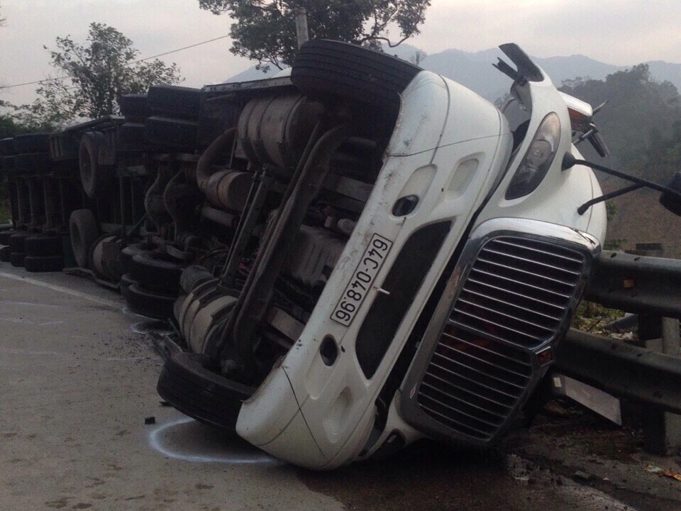 Tuy nhiên, xe đang xuống đèo trên quốc lộ 14, đến Km 1419 (đoạn thuộc xã Đắk Man, Đắk Glei, Kon Tum) thì bất ngờ bị lât nghiêng làm lái xe và phụ xe bị thương (gãy tay, chân) kẹt cứng trong cabin.