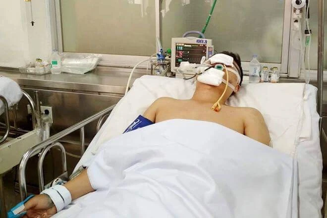 Thượng úy Trung đang cấp cứu tại BV.