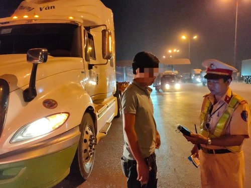 CSGT cũng phát hiện và xử lý đối với một trường hợp tài xế xe container có nồng độ cồn 0,35 mg/lít khí thở.