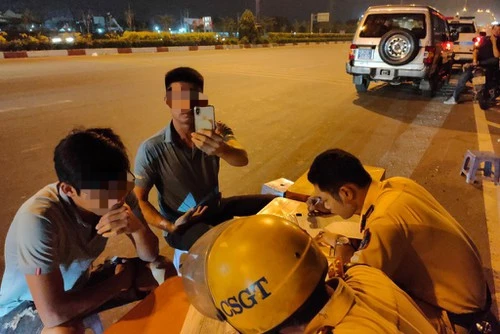 Sau gần 2 giờ làm việc, CSGT đã kiểm tra nồng độ cồn đối với hàng chục tài xế và lập biên bản đối với năm trường hợp vi phạm cồn.