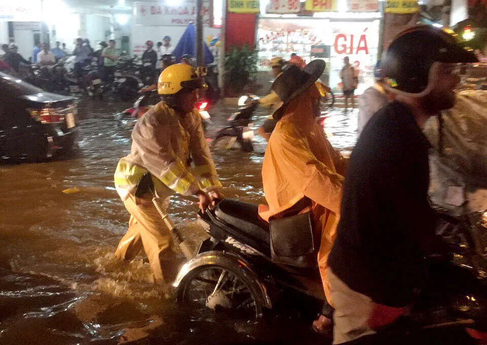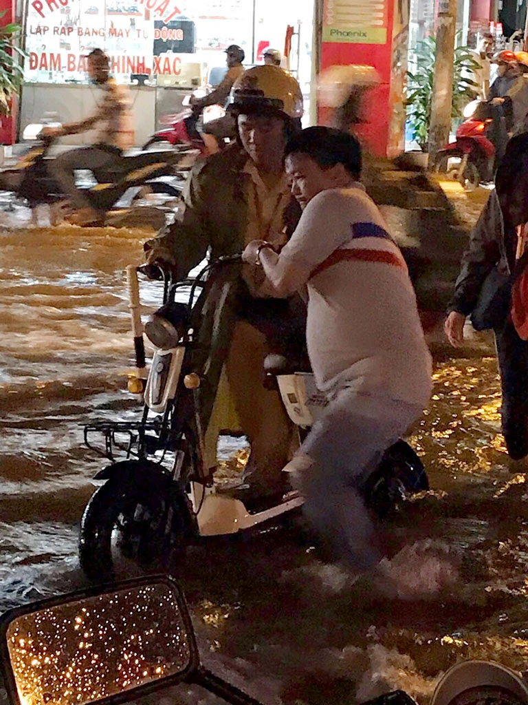 Do tình trạng ngập sâu, nhiều xe máy bị chết, người dân bì bõm trong nước. Thấy vậy, Đội CSGT quận 12 đã nhanh chóng cử lực lượng đến để điều tiết giao thông, hướng dẫn người dân qua khỏi điểm ngập. Đồng thời hỗ trợ, đẩy xe giúp bà con khi xe máy bị chết đến khu vực khô ráo, an toàn.