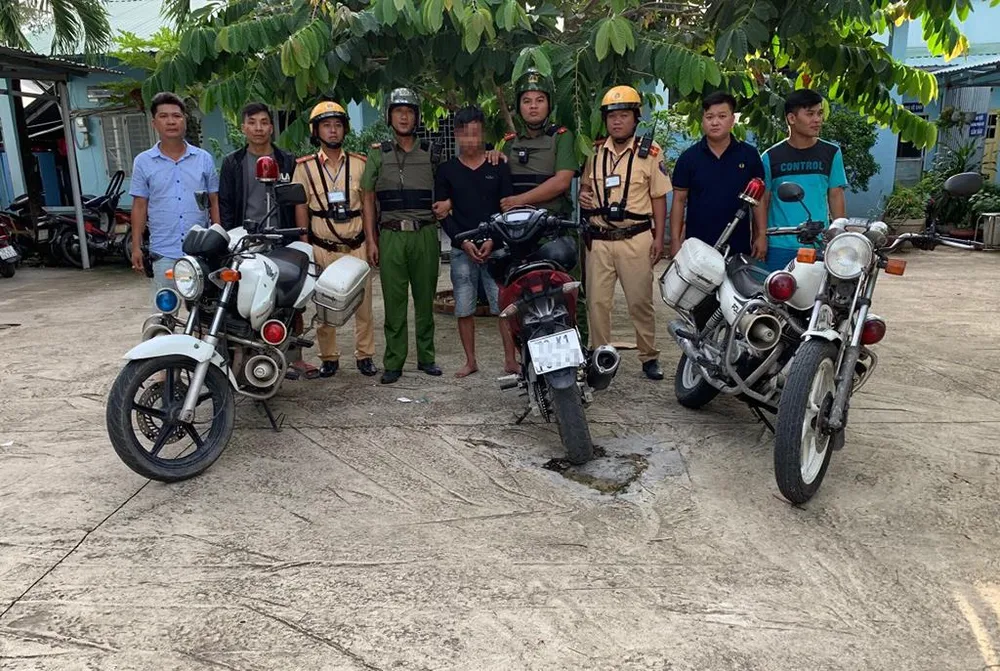 Đội CSGT-TT vừa công khai, vừa hóa trang để bắt đối tượng trộm xe. Ảnh do công an cung cấp.