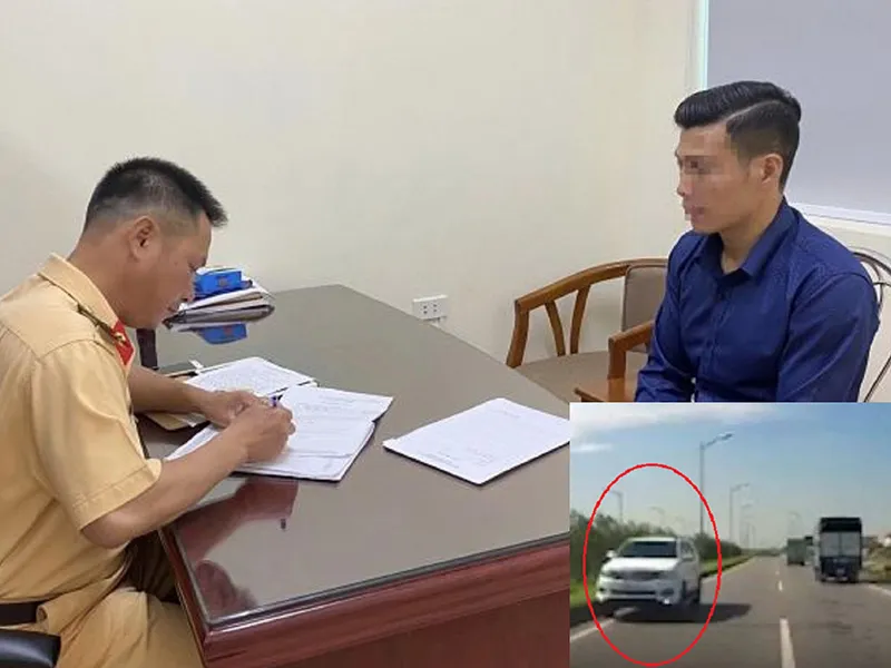 CSGT xử phạt một tài xế ô tô đi ngược chiều trên cao tốc từ hình ảnh camera hành trình của một xe khác được đăng tải trên mạng xã hội. Ảnh: MH