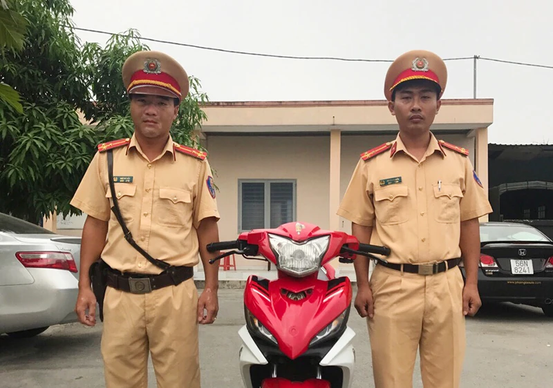 Bằng phán đoán tinh tế, hai CSGT đã phát hiện ra kẻ trộm chiếc xe máy này. Ảnh: Công an cung cấp