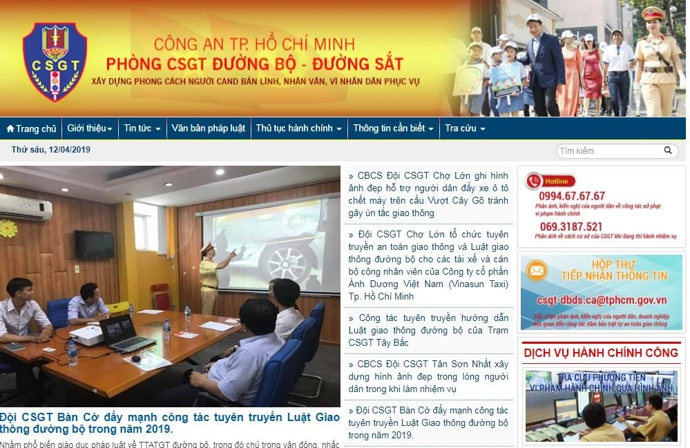 Trang thông tin điện tử của Phòng CSGT TP.HCM. Ảnh: LÊ THOA