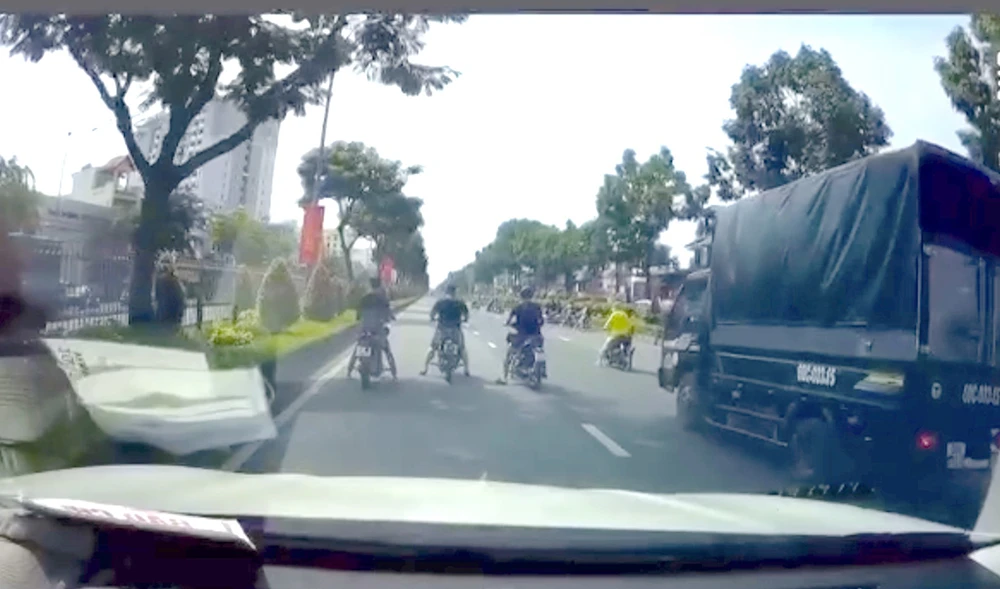 Cũng trong chiều cùng ngày, Đội CSGT Nam Sài Gòn phát hiện và truy đuổi một nhóm 10 xe máy lưu thông thành đoàn, ngang nhiên chặn đầu ô tô để biểu diễn trên tuyến đường Nguyễn Văn Linh (quận 7) khiến dư luận bức xúc.