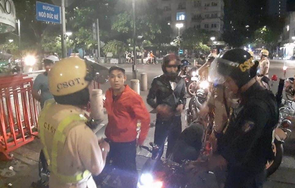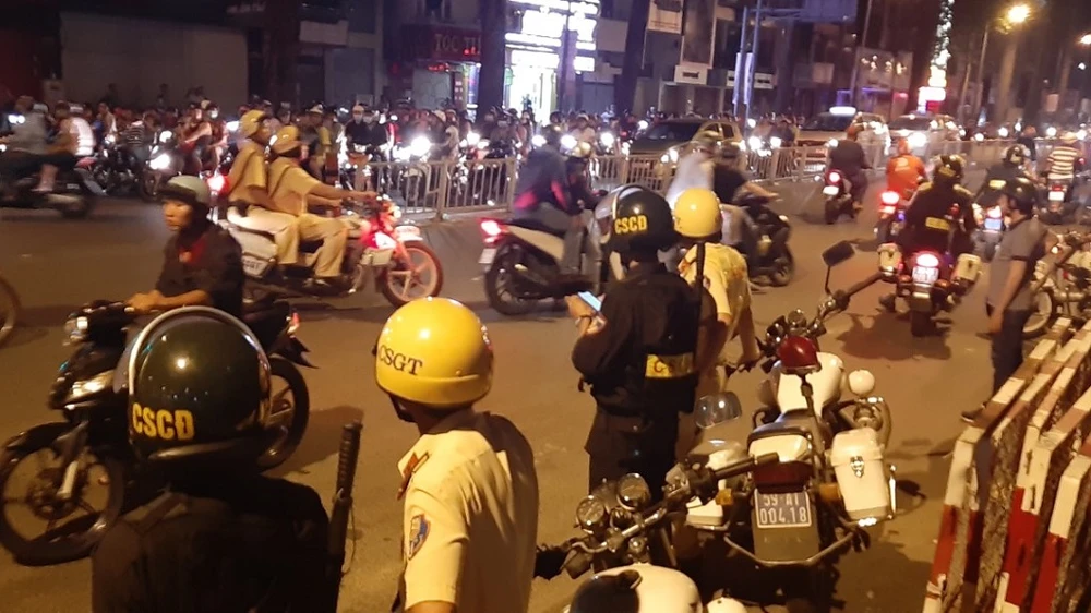 Hàng trăm CSGT thuộc Đội CSGT Bến Thành cùng với cảnh sát hình sự, cảnh sát cơ động xuất quân, xử lý hàng chục trường hợp thanh thiếu niên quá khích.