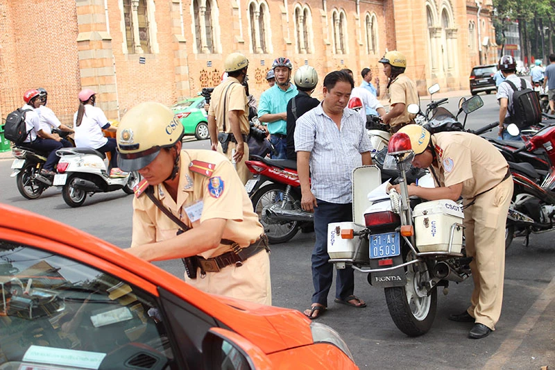 Một số hình ảnh PV ghi nhận CSGT xử lý vi phạm qua hình ảnh trên một số tuyến đường Lê Duẩn, Lý Tự Trọng,... do Đội CSGT Bến Thành trực tiếp xử lý.