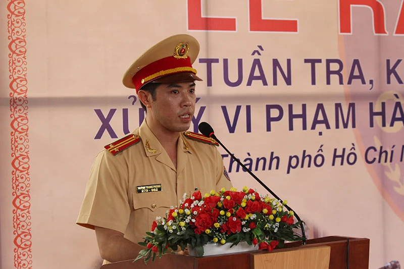 Phát biểu tại lễ ra quân, Trung tá Huỳnh Trung Phong, Phó phòng CSGT đường bộ - đường sắt Công an TP.HCM, cho biết trên thực tế các yếu tố tác động đến trật tự an toàn của TP ta hiện nay vẫn còn nhiều bất ổn.