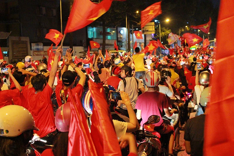 Tối 27-1, Phòng PC67 Công an TP.HCM cho biết khu vực ngã tư Trần Hưng Đạo - Nguyễn Thái Học đang xảy ra tình trạng ùn ứ nghiêm trọng khi lượng người hâm mộ đang đổ về trung tâm TP.