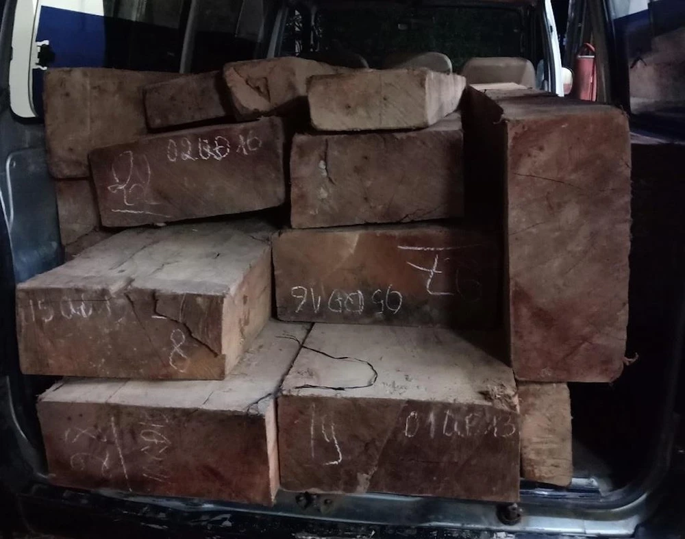 Kiểm tra trên xe khách, lực lượng chức năng ghi nhận có 14 phách gỗ (khoảng 5 m3) chưa xác định chủng loại, không có giấy tờ chứng minh nguồn gốc.