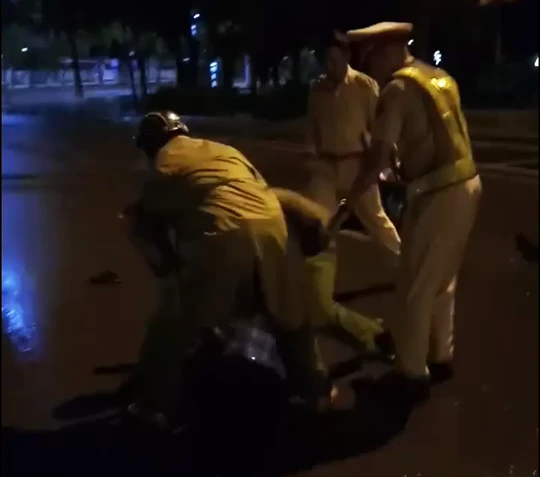 Từ sáng 8-11, nhiều diễn đàn, tài khoản trên mạng xã hội Facebook chia sẻ một clip có hình ảnh một số CSGT giằng co với một số người dân. Khi đang nói chuyện với người dân, một CSGT bất ngờ té ngã ra sau. Người đàn ông lập tức liên tục kêu lên “Bậy! Bậy! Bậy!...” và chỉ tay vào biểu hiện của CSGT để khẳng định mình không hề có va chạm gây té ngã. Sau đó người đàn ông đó bị khống chế nằm giữa đường rồi đưa đi.