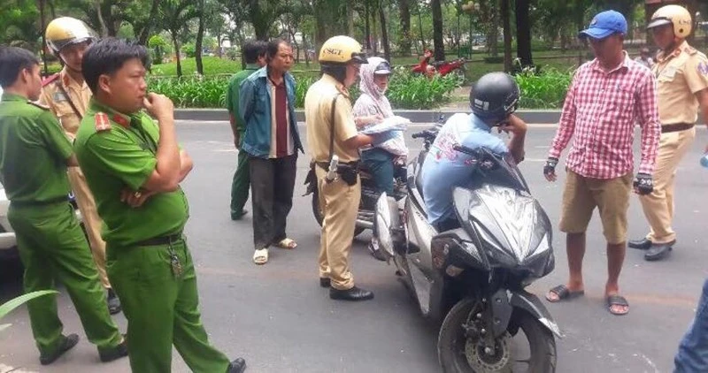 Vụ người vi phạm cự cãi, bỏ chạy khi bị CSGT xử phạt ở Phú Nhuận. Ảnh: ĐINH ĐẠI
