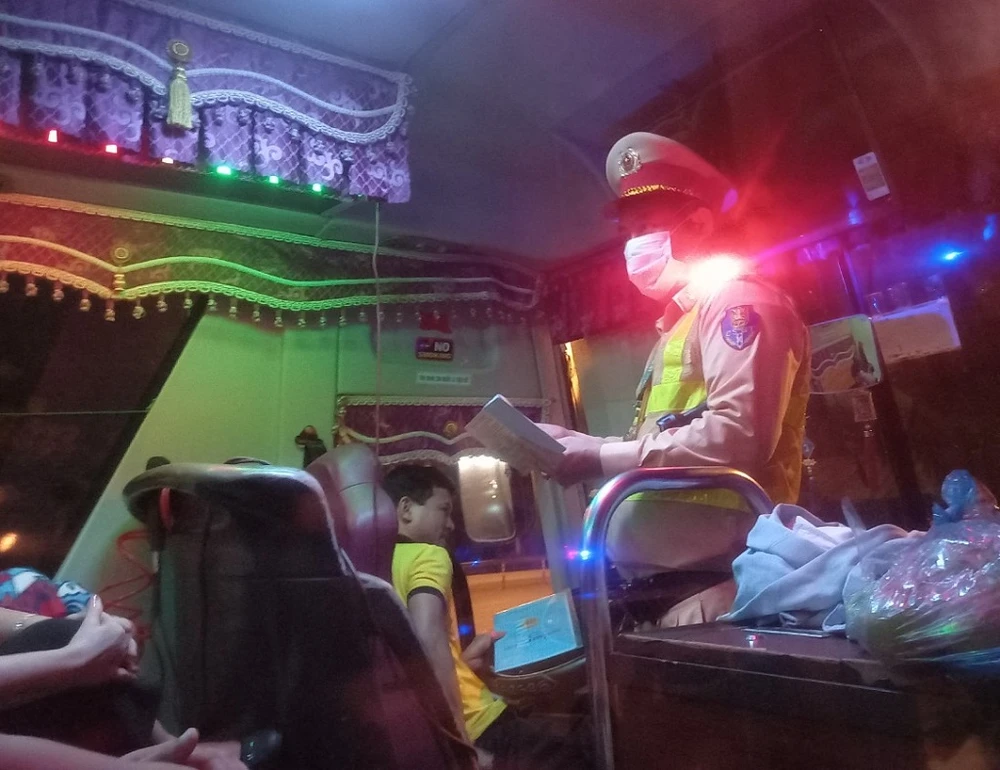 Đặc biệt, đối với các phương tiện là xe khách, ngoài kiểm tra tài xế, CSGT còn lên tận xe để tuyên truyền, nhắc nhở ý thức tham gia giao thông của hành khách, trong đó có việc thắt dây an toàn ở những vị trí được trang bị dây an toàn.